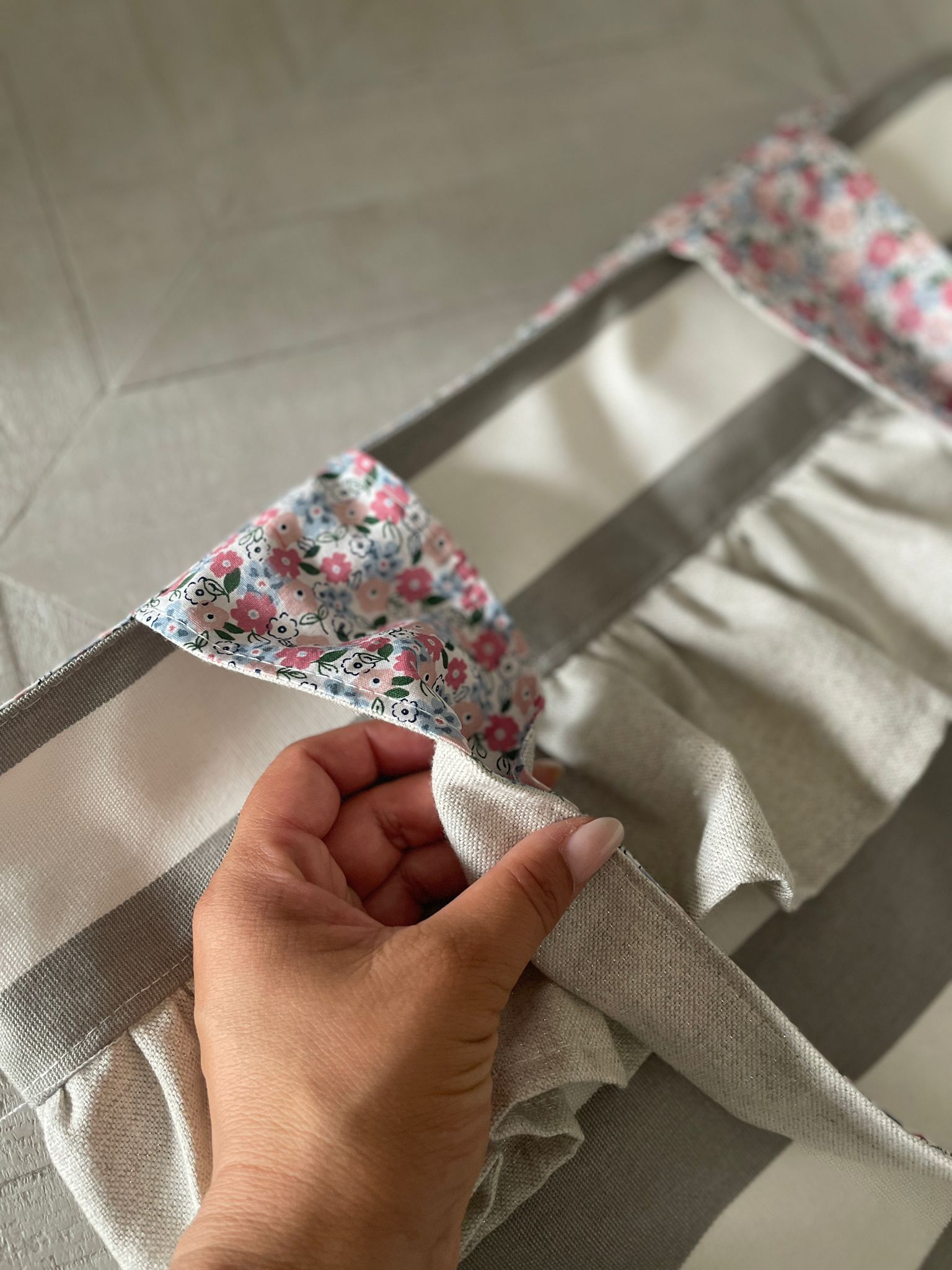 Tela interior (forro): algodón combinada estampado floral y liso.